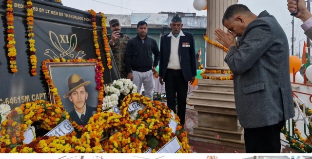 | Kathua pays tributes to the son of soil Martyr Capt Sunil Choudhary | | Kathua , January 27 (Scoop News)-A solemn tribute paying ceremony was held today at Capt Sunil Choudhary Chowk Kathua to commemorate the death anniversary of Martyr (Capt Sunil Choudhary), who laid down his life in the service of the nation.