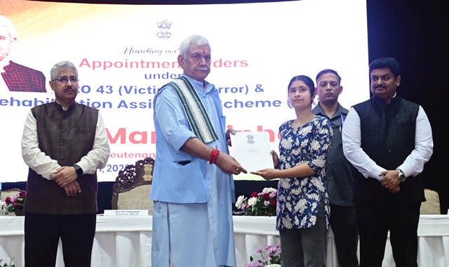 Jammu, March 23 (Scoop News)-Lieutenant Governor Shri Manoj Sinha on Monday handed over appointment letters to 37 Next of Kins (NoKs) of victims of terrorism, at Convention Centre Jammu.