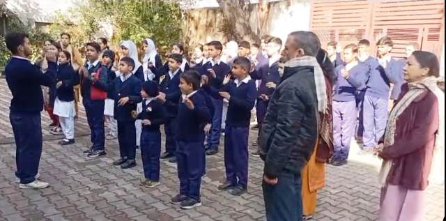 Jammu, January 27 (Scoop News)-The Divyangjan of the School for Hearing Handicapped also celebrated the Republic Day with traditional fervor. The Principal of the School Roshan Bhan unfurled the Tricolour. The National Anthem was sung with sign language. The Principal in his address explained the importance of the Republic Day and the Constitution that was introduced on 27th January 1950.