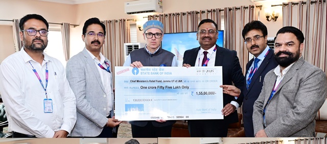 Chief Minister Omar Abdullah expressed his gratitude to the SBI employees for their generous contribution, describing it as “a noble gesture of solidarity and service beyond banking.”